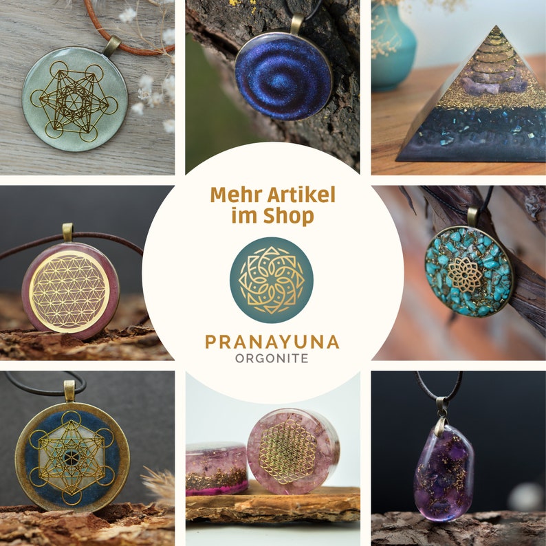 Jedes unserer Orgonit-Amulette wird mit viel Liebe, Sorgfalt und Hingabe in feinster Handarbeit hergestellt. Durch die harmonische Kombination kraftvoller Edelsteine, feinster Metallpulver und kristallklarem Epoxidharz entsteht ein energetisches Schmuckstück, das Schönheit und spirituelle Kraft miteinander verbindet. Ein Begleiter, der nicht nur ästhetisch begeistert, sondern auch tief auf energetischer Ebene wirkt.